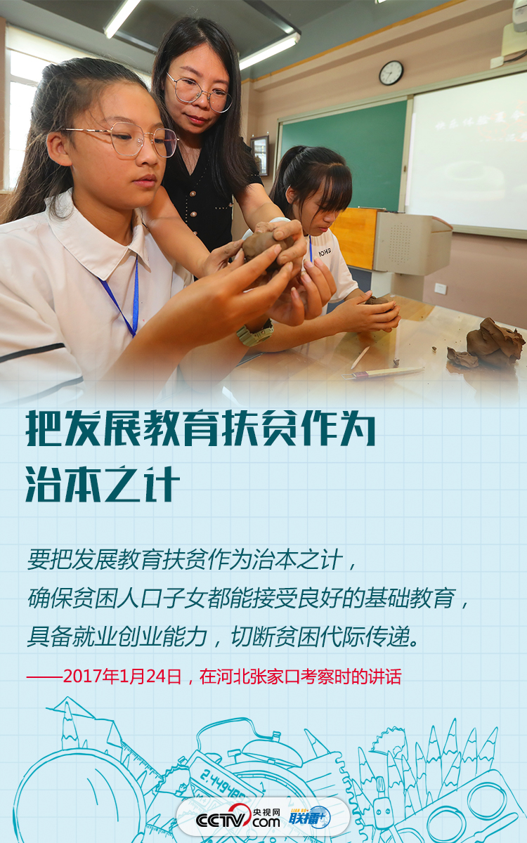 习近平总书记曾在多个场合强调教育扶贫的重要意义,希望通过教育让同学们认识到造成贫困的原因,找到解决贫困的办法,从而“立鸿鹄志,做奋斗者”,以实际行动证明自己“不愧为大有希望、大有作为的一代”。