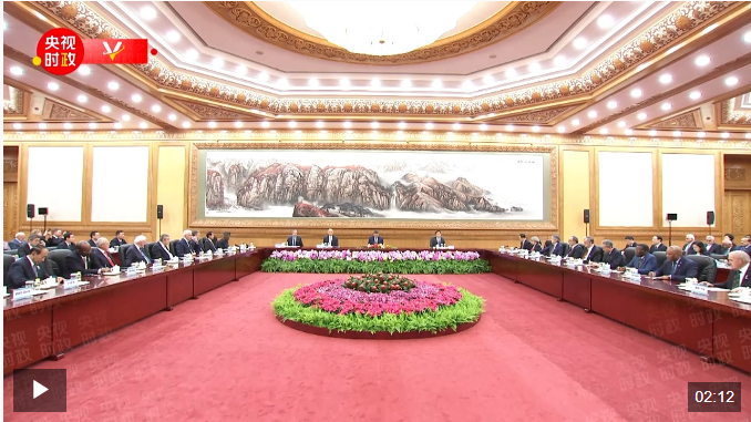 10月11日上午,国家主席习近平在北京人民大会堂集体会见出席中国国际友好大会暨中国人民对外友好协会成立70周年纪念活动的外方嘉宾。