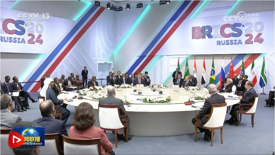 当地时间10月23日上午,金砖国家领导人第十六次会晤在喀山会展中心举行。俄罗斯总统普京主持会晤。中国国家主席习近平、巴西总统卢拉(线上)、埃及总统塞西、埃塞俄比亚总理阿比、印度总理莫迪、伊朗总统佩泽希齐扬、南非总统拉马福萨、阿联酋总统穆罕默德等出席。