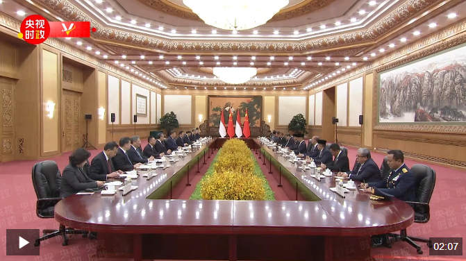 11月9日下午,国家主席习近平在北京人民大会堂同来华进行国事访问的印度尼西亚总统普拉博沃举行会谈。