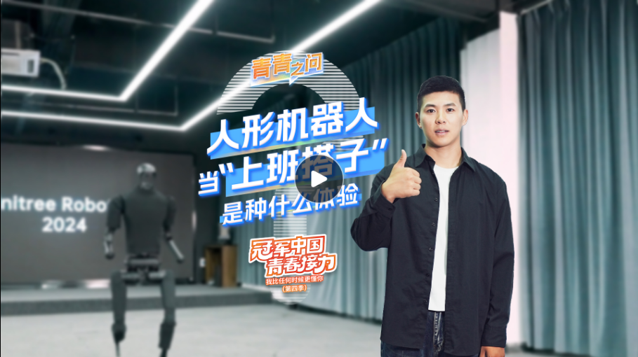 11月9日,“冠军中国·青春接力”网络主题活动暨我比任何时候更懂你(第四季)系列短视频之《人形机器人当“上班搭子”是种什么体验?》上线。在本集短视频中,青青智造家、杭州宇树科技有限公司G1机器人项目组成员刘金达,介绍了他的人形机器人“同事”们,展现了在AI技术的加持下人形机器人广泛的应用场景。