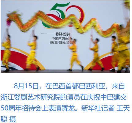 中国和巴西分别是东西半球最大的发展中国家,均为重要新兴市场国家,互为全面战略伙伴。今年是中巴建交50周年。半个世纪以来,面对国际风云变幻,中巴关系始终保持健康稳定发展,各领域务实合作成果丰硕,成为发展中大国团结合作、携手发展的典范,双边关系的全局性、战略性、全球性影响持续提升。今年5月,中国和巴西共同发表关于政治解决乌克兰危机的“六点共识”,得到越来越多国家支持。