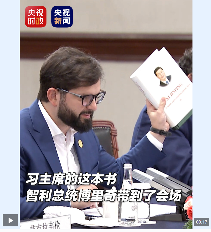 会谈结束后,智利总统邀请习近平主席在著作《习近平谈治国理政》第四卷上签字。 P4a安康新闻网