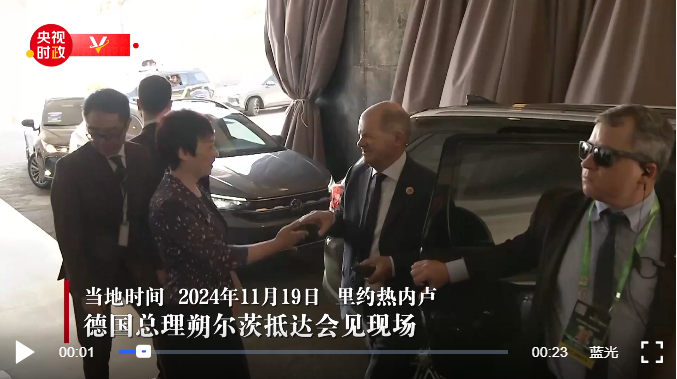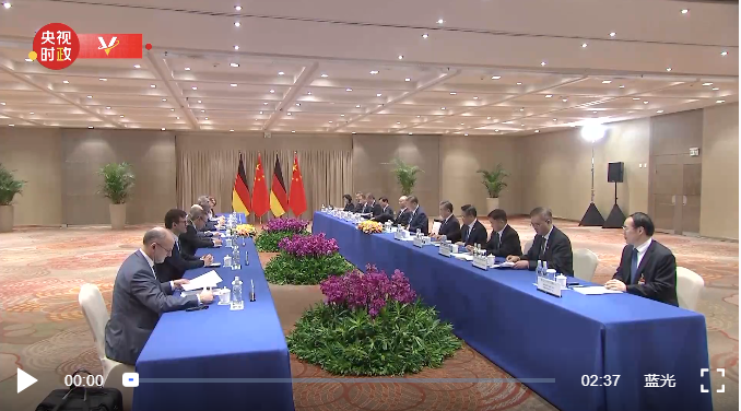 当地时间11月19日,国家主席习近平在里约热内卢出席二十国集团领导人峰会期间会见德国总理朔尔茨。