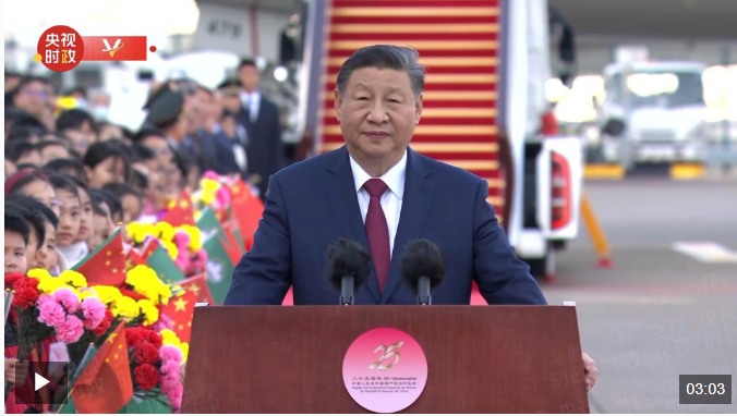 中共中央总书记、国家主席、中央军委主席习近平18日下午乘专机抵达澳门,出席将于20日举行的庆祝澳门回归祖国25周年大会暨澳门特别行政区第六届政府就职典礼并视察澳门。