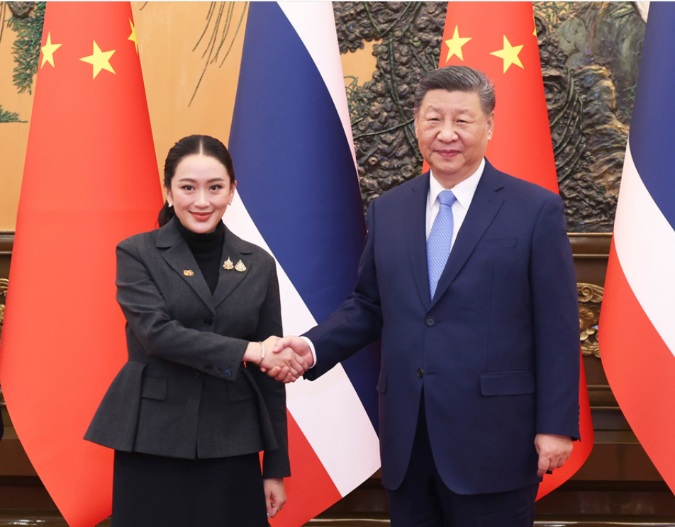 2月6日上午,国家主席习近平在北京人民大会堂会见来华进行正式访问的泰国总理佩通坦。