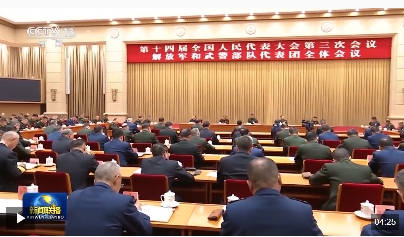 △2025年3月7日,解放军和武警部队代表团全体会议现场。