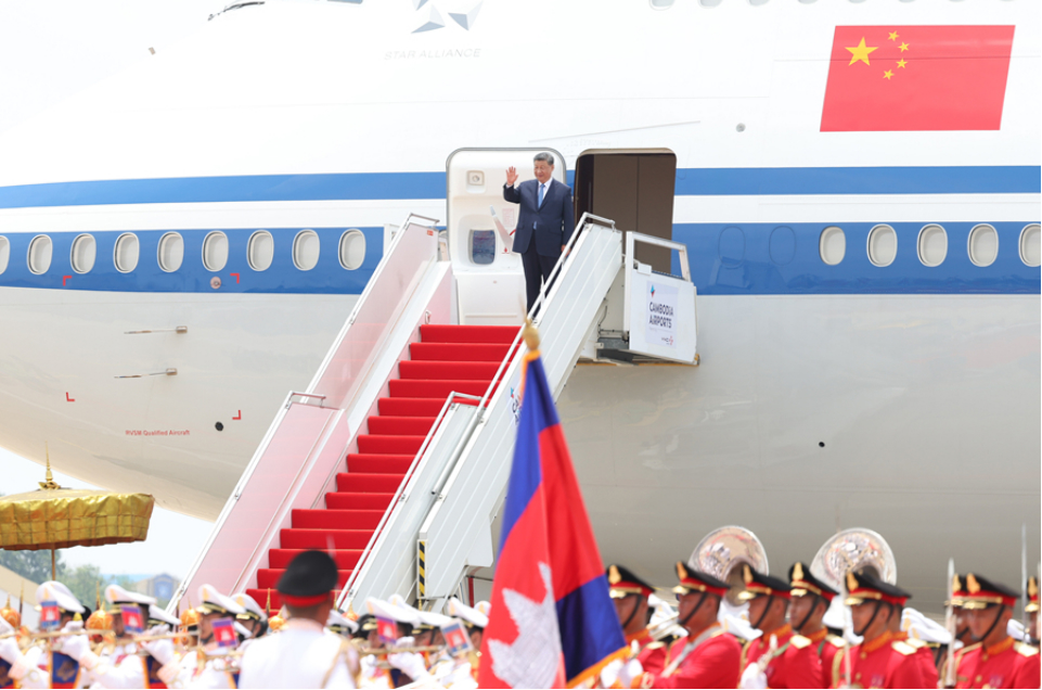 当地时间4月17日上午,国家主席习近平乘专机抵达金边,应柬埔寨国王西哈莫尼邀请,对柬埔寨进行国事访问。