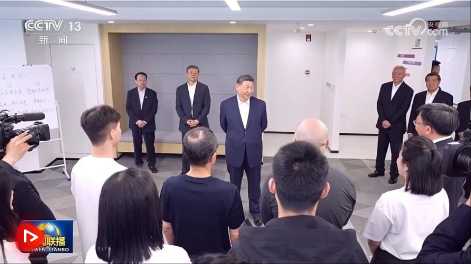 29日上午,习近平在中共中央政治局委员、上海市委书记陈吉宁和市长龚正陪同下,来到位于徐汇区的上海“模速空间”大模型创新生态社区调研。