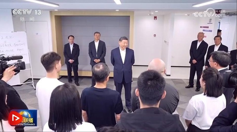 29日上午,习近平在中共中央政治局委员、上海市委书记陈吉宁和市长龚正陪同下,来到位于徐汇区的上海“模速空间”大模型创新生态社区调研。