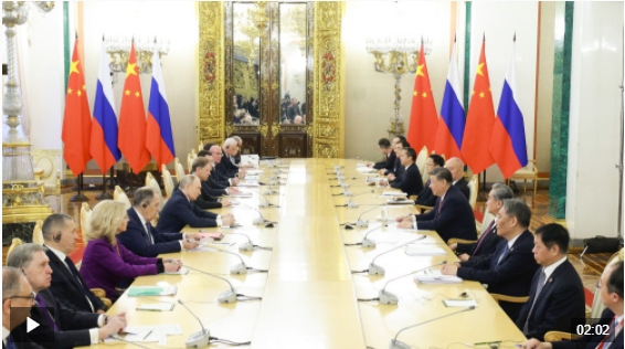 普京说:“尊敬的习近平主席,我的好朋友,俄中两国人民在艰苦战争岁月中结成的战斗情谊,是当今俄中新时代全面战略协作伙伴关系的根本基石之一。我们发展双边关系是为了造福两国人民,而非针对任何第三方。构建睦邻友好、深化友谊、拓展合作,这是俄罗斯与中国基于战略协作作出的共同选择。”