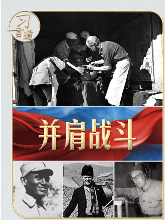 印度医生柯棣华、法国医生贝熙叶、德国人约翰·拉贝、丹麦人辛德贝格、英国人林迈可、国际主义战士汉斯·希伯、苏联飞行大队长库里申科、美国“飞虎队”......他们的事迹,习近平总书记曾多次动情讲述。总书记还在国内外重要场合为曾帮助和支持中国抗战的国际友人颁奖,向他们致敬。