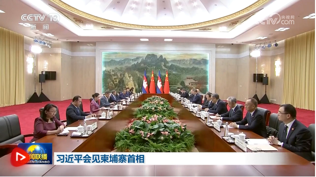 8月30日下午,国家主席习近平在天津迎宾馆会见来华出席2025年上海合作组织峰会的柬埔寨首相洪玛奈。