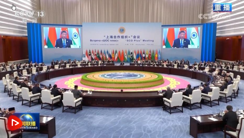 9月1日下午,“上海合作组织+”会议在天津梅江会展中心举行。国家主席习近平主持会议并发表题为《凝聚上合力量 完善全球治理》的重要讲话。