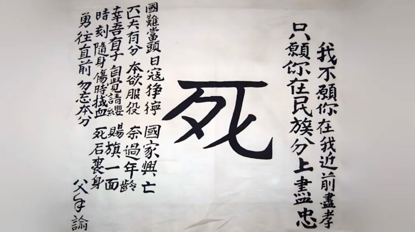 1937年9月,一位名叫王者成的中国父亲把这面“死”字旗交给即将上战场的儿子。RQY安康新闻网