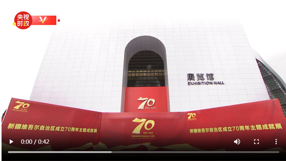上午10时30分许,习近平等来到乌鲁木齐文化中心展览馆,走进展厅参观成就展。展览通过“万方乐奏换新天”“潮涌天山展宏图”“美丽新疆铸辉煌”3个部分,全景展现了70年来在中国共产党坚强领导下、在全国各地大力支援下,新疆各族人民团结一心、艰苦奋斗、顽强拼搏取得的辉煌成就。