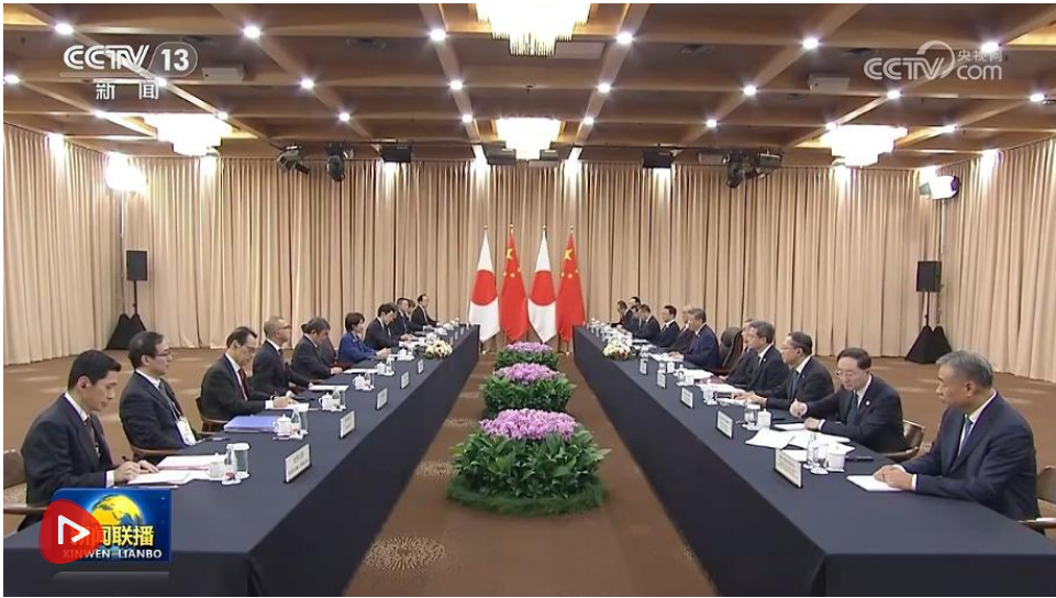 当地时间10月31日下午,国家主席习近平在韩国庆州出席亚太经合组织第三十二次领导人非正式会议期间应约会见日本首相高市早苗。