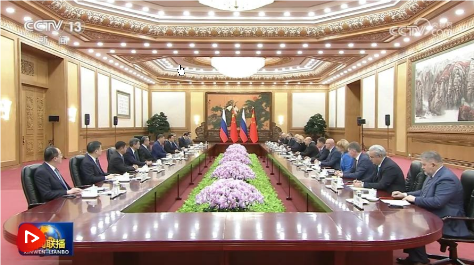 11月4日上午,国家主席习近平在北京人民大会堂会见俄罗斯总理米舒斯京。