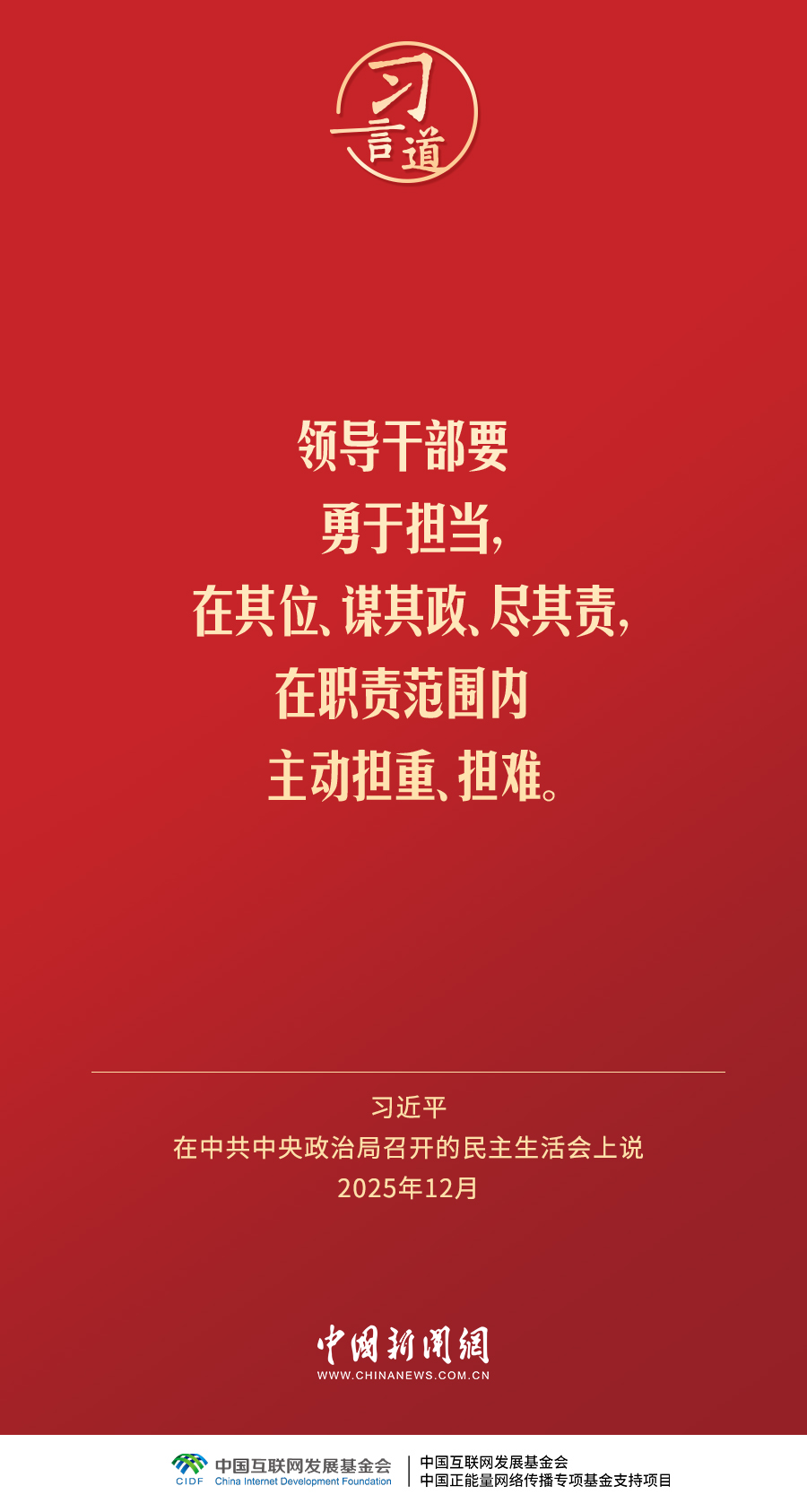 12月25日至26日,中共中央政治局召开民主生活会,中共中央总书记习近平主持会议并发表重要讲话。习近平强调——