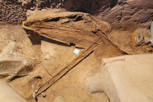 近期,在秦俑一号坑第三次发掘中,考古人员在T23第11过洞的中部清理出一件较为完整的弓弩,虽然历经千年,但其弓弦依然清晰可见。弓弦直径约0.8厘米,表面光滑圆润,非编织物。考古人员表示,这是在秦俑考古中首次发现比较清楚的弓弦。经仔细观察分析,推测材质可能是动物的筋。另外,考古人员还清理出了完整的弓箭。秦俑一号坑考古队队长申茂盛认为,凭借这些出土文物就可以复原出比较接近真实的秦代弓弩。同时,根据机械运动学以及机械设计原理可以推算出弓箭的射程,以此可以对秦军强大的战斗力有一个正确的评估。