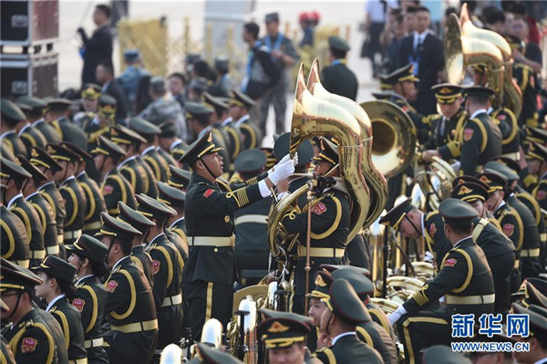 10月1日上午,庆祝中华人民共和国成立70周年大会将在北京天安门广场隆重举行。这是解放军联合军乐团为演奏做准备。 新华社记者 刘潺 摄 10月1日上午,庆祝中华人……