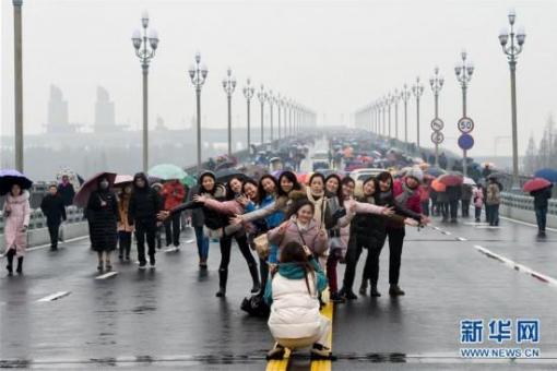 12月26日,游客在南京长江大桥拍照留念。 当日,经过全封闭维修改造后的南京长江大桥公路桥向公众开放,吸引不少游客前往。 新华社记者 李博 摄……