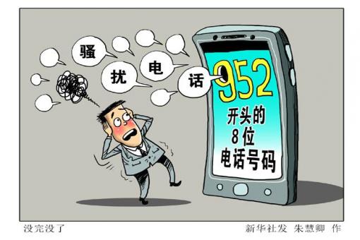 新华社厦门9月4日电 题:没完没了的录音推销、屡禁不绝的小额诈骗……谁在操纵952开头的骚扰电话? 新华社“新华视点”记者颜之宏 漫画:没完没了 新华社……