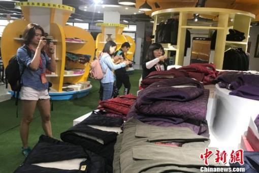 在广河县电商创业孵化园中,由当地人在“后厂”中制作的服饰在“前店”中受民众热捧。艾庆龙摄 (脱贫攻坚在行动)甘肃广河传统“针线活”走俏 农妇挣钱顾家“两……