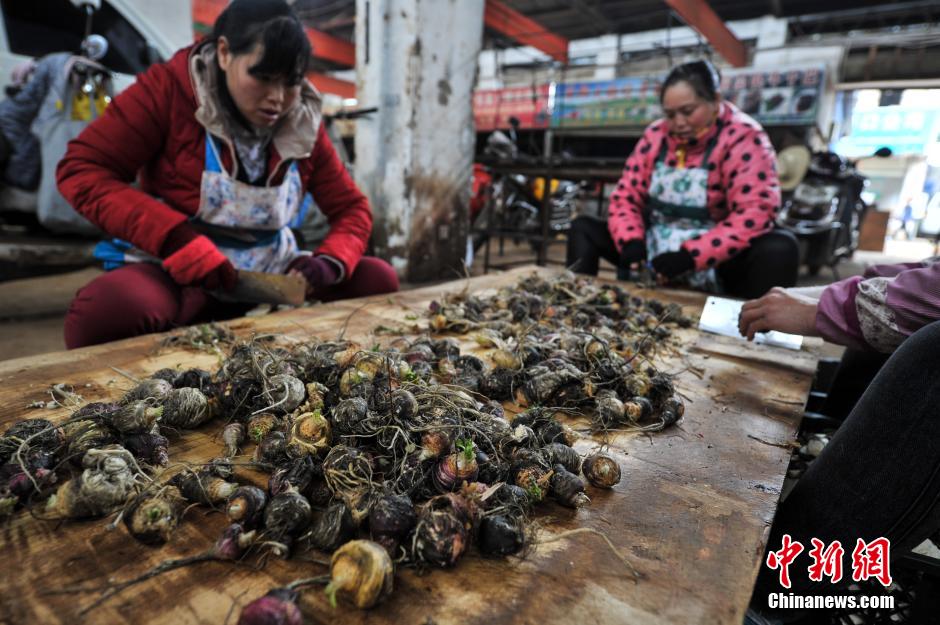 2月23日,昆明木水花野生菌交易市场里,玛卡商贩聚在一起打牌。在过去数年内,玛卡曾经一度疯狂,优质的玛卡干片价格上万,鲜果价格也冲过百元。如今玛卡鲜果每……