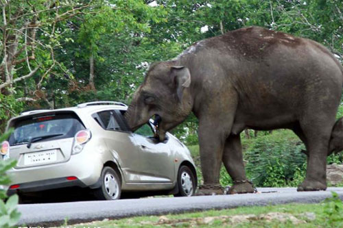 大象趁游客自拍偷包