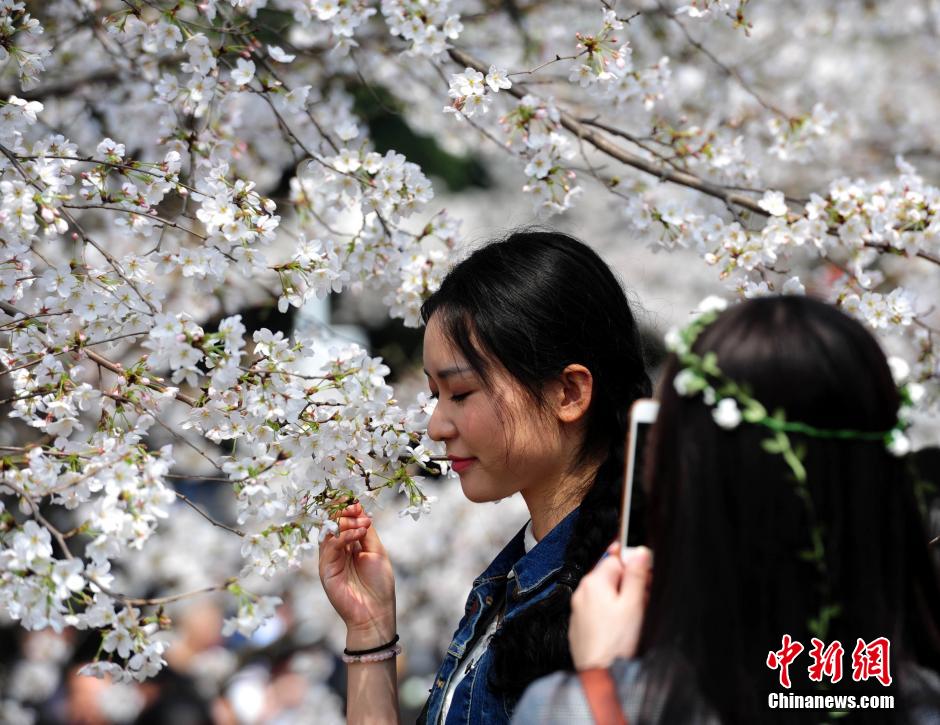 3月21日,武大樱花盛开游客如织。当日,武大樱花盛开的首个双休日。长约200米的樱花大道上1000多株樱花竞相绽放,吸引着数万游客,使宁静的校园变成了热闹的公园……