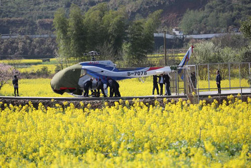 婺源推出乘直升机看油菜花 空中俯瞰金色花海