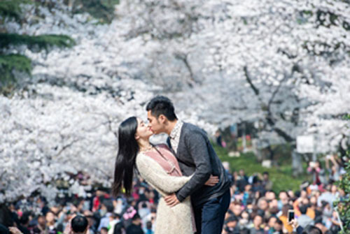 武大樱花尽开放 游客挤爆校园