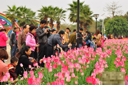 广西柳州园博园的20万株郁金香竞相开放,五彩缤纷花朵引来众多市民观赏、拍照。周潇男 摄2月6日,广西柳州园博园的20万株郁金香竞相开放,吸引了众多游人前来观……