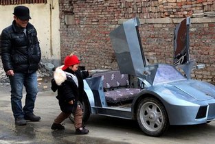 郑州大爷自造“兰博基尼”送孙子