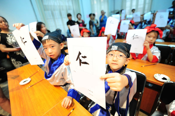 8月28日,天津市河西区马场道小学的一年级新生在天津文庙开笔典礼上“击鼓鸣志”。新学期伊始,天津市河西区马场道小学的92名一年级新生身穿古典服饰,在天津文庙……