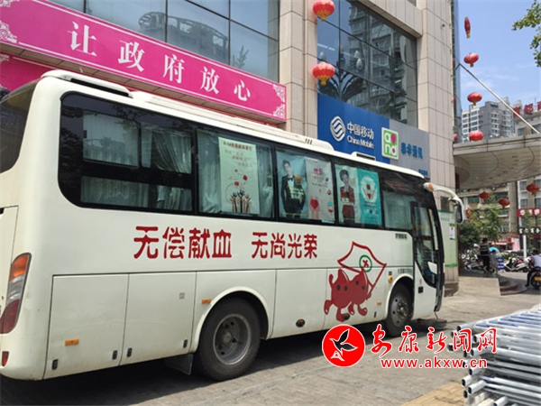 中午的太阳火辣辣的,气温越发的高了,热浪一阵阵的袭来,街上嘈杂的汽车轰鸣声和人声交织在一起,让人更加烦躁,就在这样燥热的三伏天,在41℃的气温下,安康市中心血站的献血车还稳稳地停在路边,等待着爱心人士的到来,等待着这份41℃的爱!