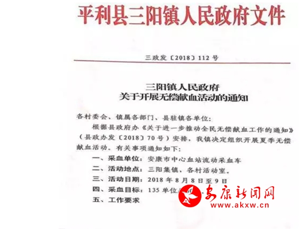 本着“捧着你的心,捧着我的心,滴滴热血播成爱,血里流着情,情深连血脉,生命与爱同在”的大爱旋律,8月8日-9日,三阳镇干部群众共有百余人爱心参与,共募得健康血液17800ml,用一张张笑脸,一份份爱心彰显了三阳小镇的文明和谐之美,大爱无疆之“神”!M8z安康新闻网