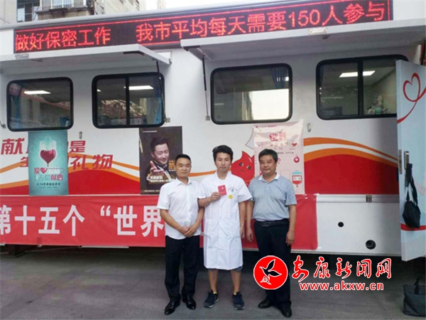 我听到这个情况后,陪同他开车专程前去安康献血,在献血车里,血站血源管理科汤主任紧紧握住胡医生的手说:“我代表病人和家属、也代表血站工作人员,感谢您不辞辛劳驱车百里,爱心献血,救老人一命!”腼腆的胡医生连忙说:“应该的!应该的!”献完血后,我和胡医生又急匆匆的赶回了单位。