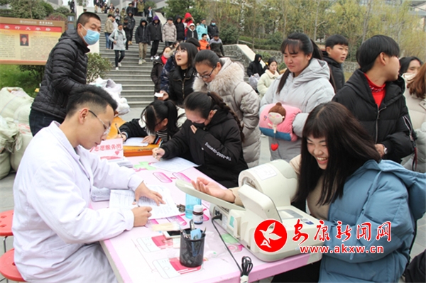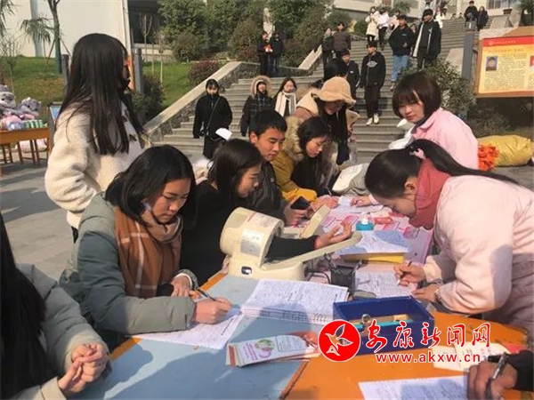 安康新闻网讯(通讯员 屈闵)在安康职业技术学院的校园中,有这样一群人,他们的面庞虽略显稚嫩,却身怀一颗颗炽热的心;他们默默无闻,却践行着传播爱心、甘于奉献的誓言。十二月的安康气温骤降,摄氏零度的低温并未阻挡住在师生餐厅前开展的暖心行动,原来是安康职业技术学院联合安康市中心血站组织的“让爱流淌 让心飞扬”主题校园无偿献血活动正式开始了。