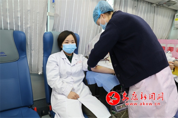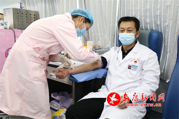 本网讯(通讯员 余飞)3月25日,紫阳县人民医院组织开展“热血战疫,共度难关”无偿献血活动。医院领导班子成员积极带头,109名干部职工挽起衣袖奉献热血,当日献血量达29700毫升。