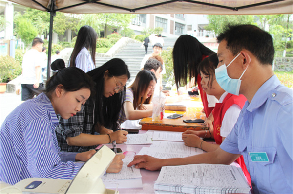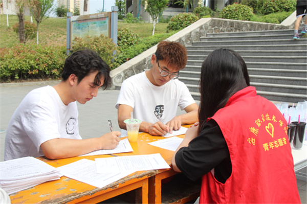 现场除了积极献血的同学,参与服务的志愿者们也非常热情,他们细心地指导同学填写体检表,为献血者倒水,发放纪念品,向前来咨询的同学宣传无偿献血,不少人也在轮换休息后走上献血车伸出手臂勇敢献血。
