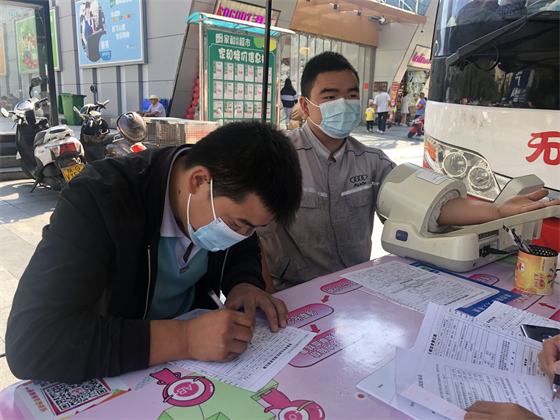 家在西安的刘盼与妻子分属两地工作,每逢节假日他都会开车来安康与妻子一起团聚,中秋这天照例和妻子出门过二人世界的刘盼在献血车前停下了脚步。“上次在西安献血都好几年前了,今天日子好,我去献个血吧?”说完刘盼拉着妻子一起上了献血车。等待初筛结果过程中,他一直拉着妻子的手说笑,夫妻俩显得亲密无间。检验结果合格后刘盼很爽快地要捐献400毫升血液。