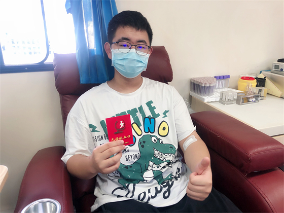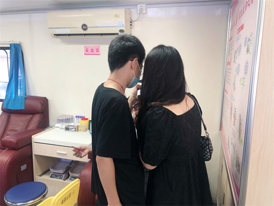中秋节不仅街上热闹,献血车上也热闹,邓孟杰正坐在采血椅上献血,他漂亮大方的女友站在旁边跟他聊着晚上要吃什么,女友的弟弟坐在远一点的地方玩着手机,女友的妈妈则坐在体检桌前测量血压,“一人献血,三人陪同”的场景着实有点可爱,但邓孟杰笑得十分开心,一直想献血的他特别选了中秋这个日子,大概也是想和爱人亲人一起分享这种美妙的人生体验。邓孟杰的女友拿起他的献血证撒娇到:“这次我们陪你,下次你也要陪我来献血。”说完把手机塞给了一旁的弟弟,指挥他给自己和男友拍合照,一边打趣弟弟拍照技术不好一边把男友手里献血证的位置调了又调。