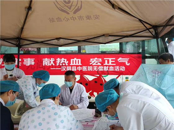 献血现场气氛热烈,秩序井然,副院长郭达献带头献血。献血队伍中,既有从医多年的老员工,也有刚入职的护理人员;既有常年坚持献血的“老熟人”,也有首次参与献血的“新人”,还有克服扎针抽血“恐惧”的护士小妹妹,义无反顾地登上了采血车,一些住院患者家属也主动参与了献血行列。在献血车内,大家相互打趣地说:“在工作中,要撸起袖子加油干,在工作之余,也要撸起袖子加油献血!”大家用实际行动诠释了大爱无疆,无私奉献的精神,彰显了汉阴中医人热心公益和医者仁心的高尚情怀。