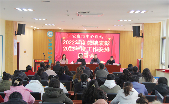 1月17日下午,安康市中心血站召开2022年度总结表彰暨2023年度工作安排部署会。总结回顾过去一年的经验成绩,安排部署2023年血站重点工作任务,表彰奖励2022年在疫情防控、乡村振兴、无偿献血、技术创新、优质服务、新闻宣传等工作中涌现出的先进集体和个人,激励广大干部职工向榜样致敬,朝模范看齐,合力书写血站高质量发展的全新篇章。