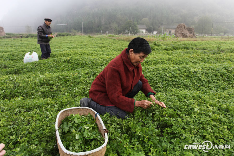 广佛镇铁炉村农户在采摘绞股兰。