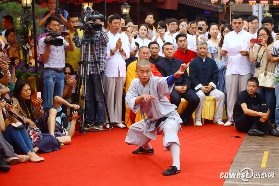 少林都市禅堂落户西安,少林武僧表演。