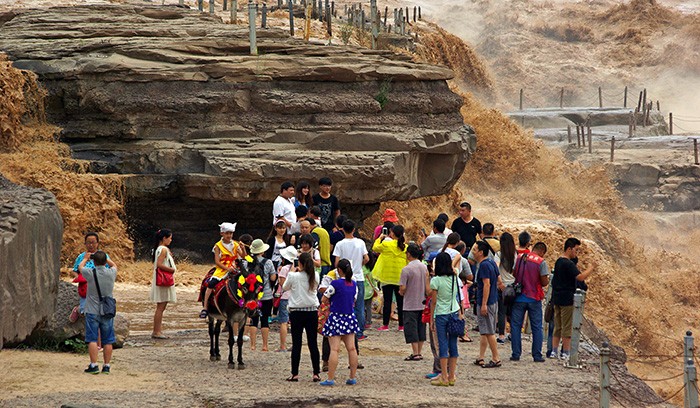 延安壶口瀑布进汛期 主副瀑布连一线