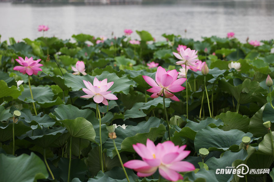 曲江池荷花争相开放 端庄美丽引游人